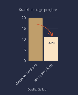 Mitarbeiter mit hoher Resilienz weisen im Durchschnitt 45 % weniger krankheitsbedingte Fehlzeiten auf als weniger resiliente Mitarbeiter.